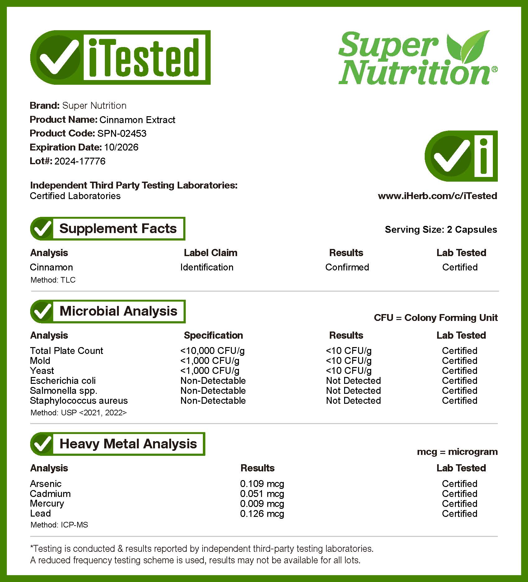 При производстве не используется молоко, яйца, рыба, моллюски и ракообразные, древесные орехи, арахис, пшеница, сои, кунжут, глютен. Произведено на предприятии, имеющем регистрацию Управления по контролю качества пищевых продуктов и лекарственных средств США, которое проходит независимые проверки, имеет регистрацию текущей надлежащей производственной практики (cGMP), и где также могут обрабатываться другие продукты, содержащие эти аллергены или ингредиенты.
